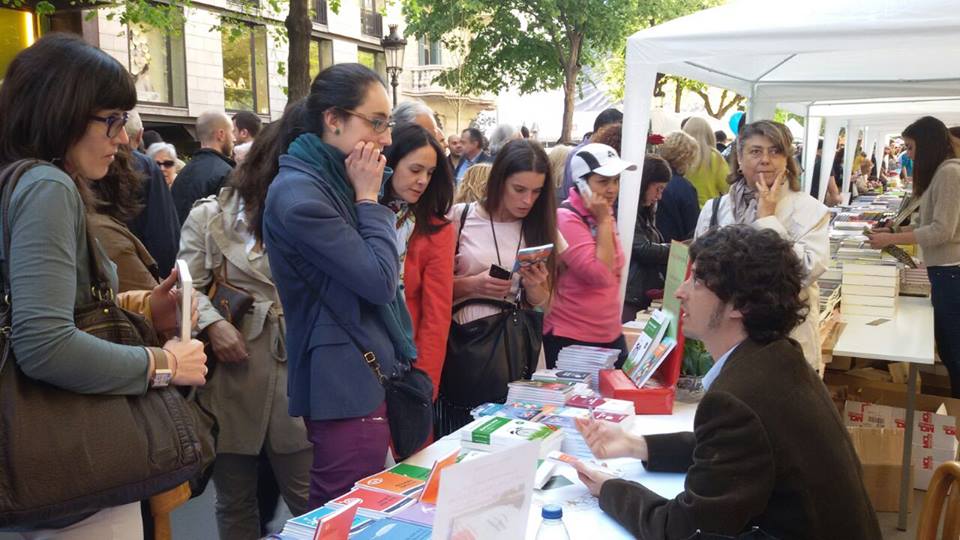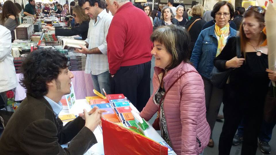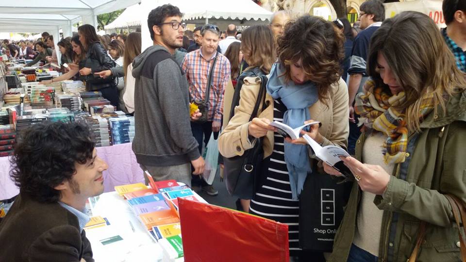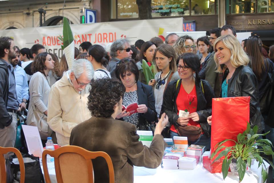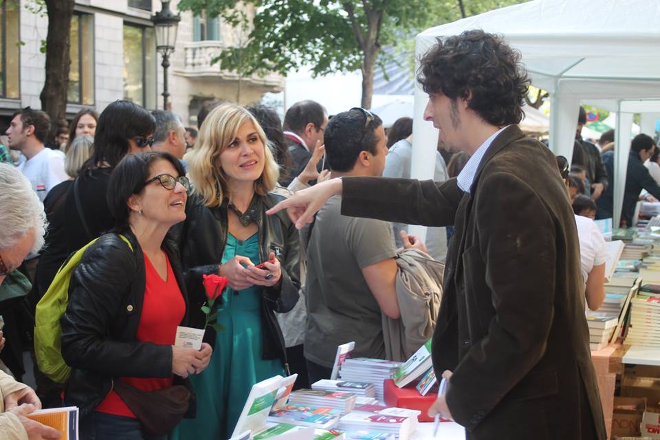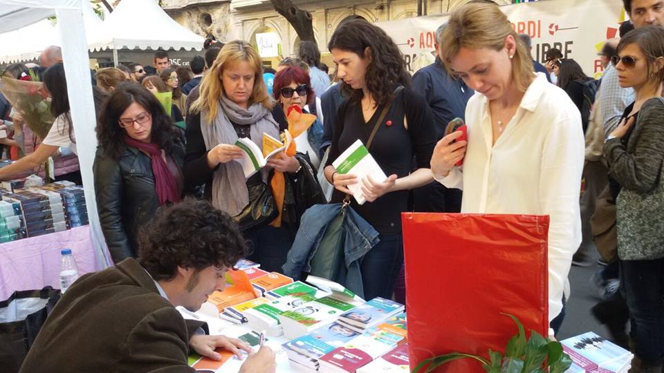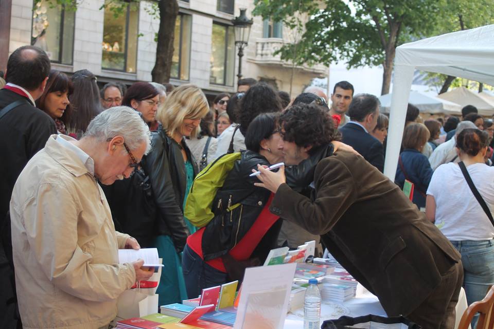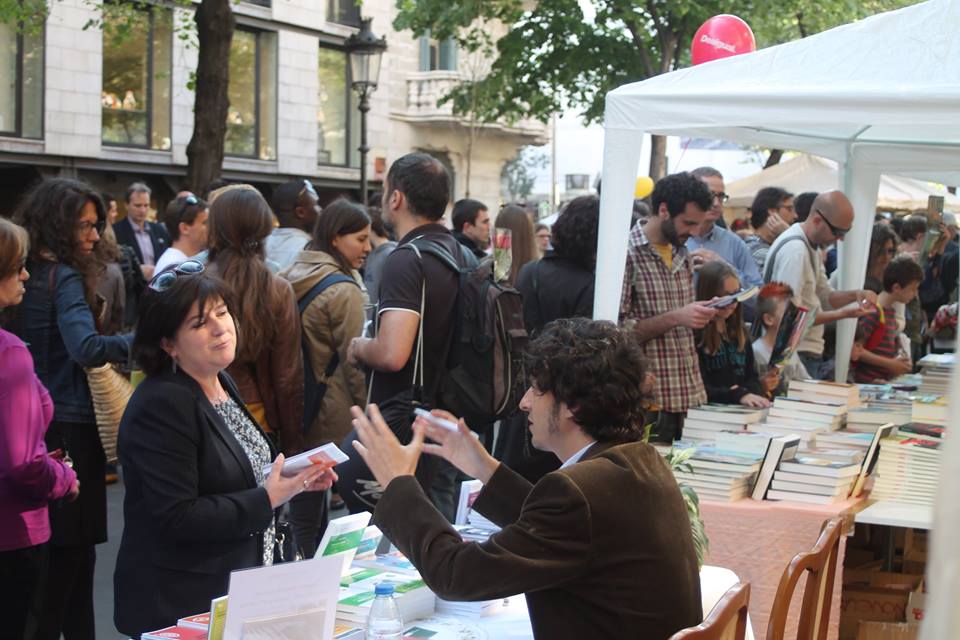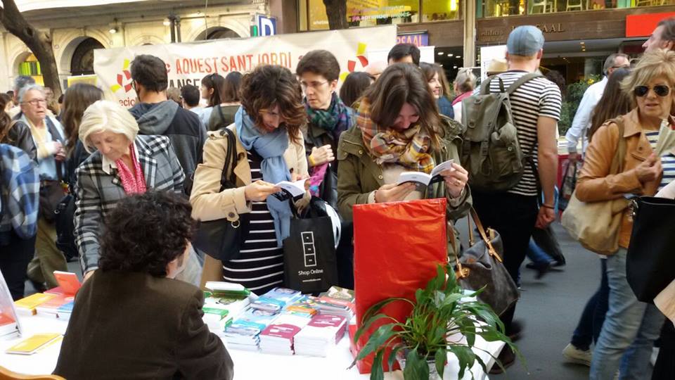 Imágenes de mi firma de libros en Rambla Catalunya, en el stand de la Librería Fabre (23 de Abril de 2015, Barcelona, Diada de Sant Jordi)