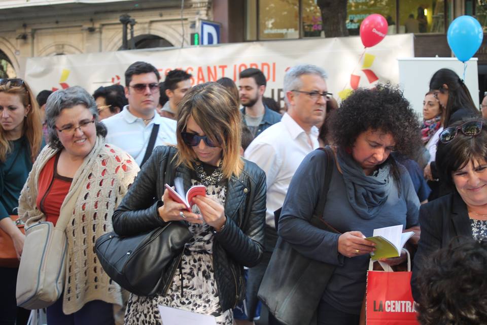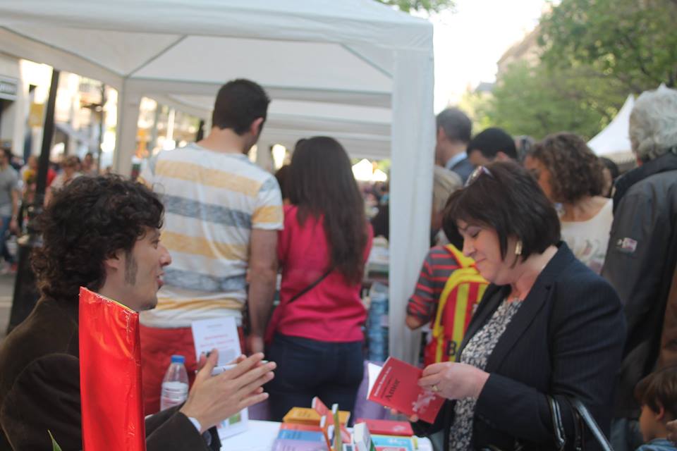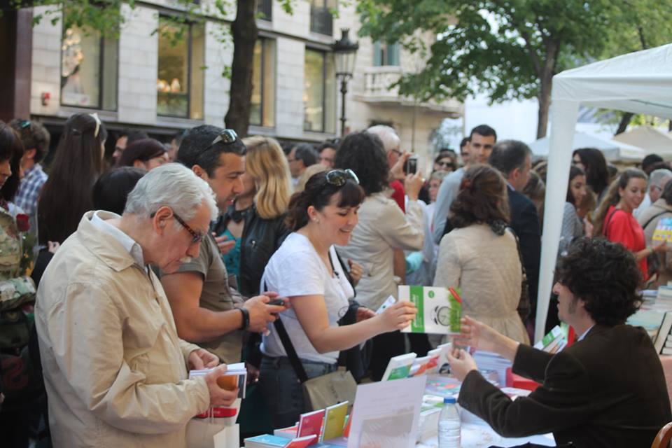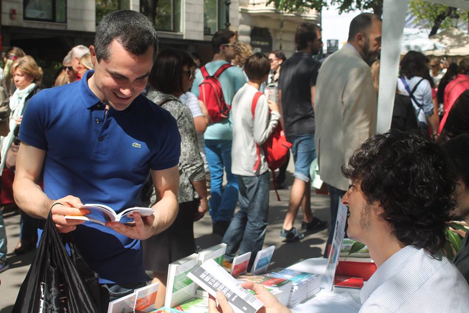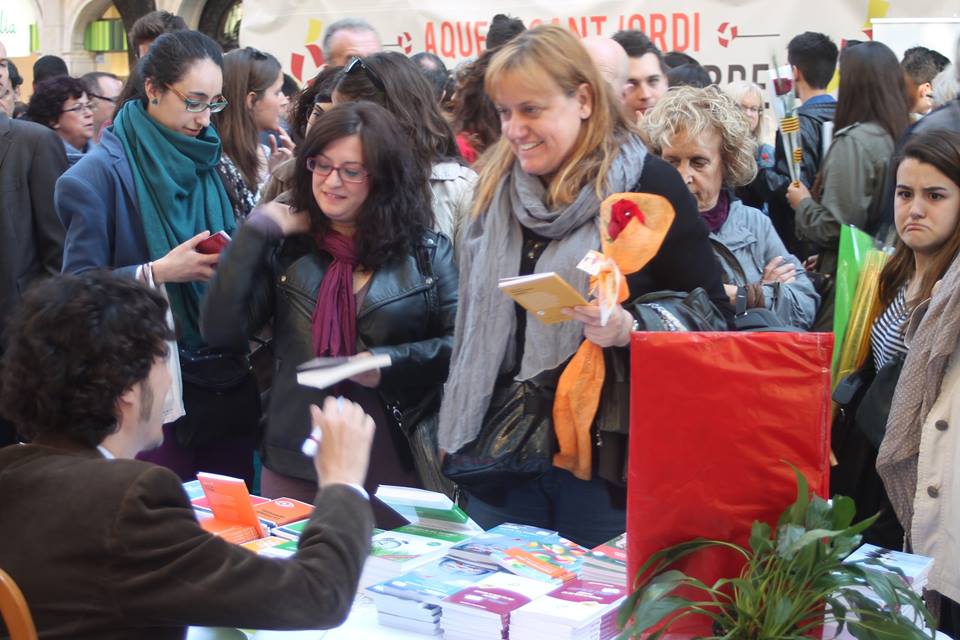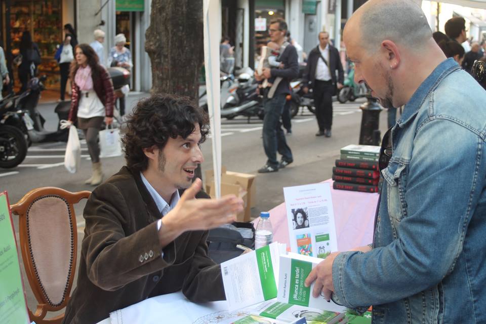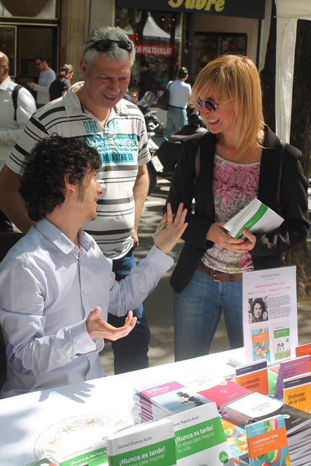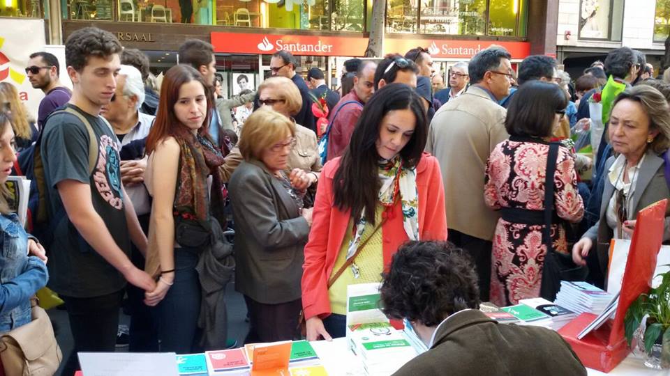 Imágenes de mi firma de libros en Rambla Catalunya, en el stand de la Librería Fabre (23 de Abril de 2015, Barcelona, Diada de Sant Jordi)